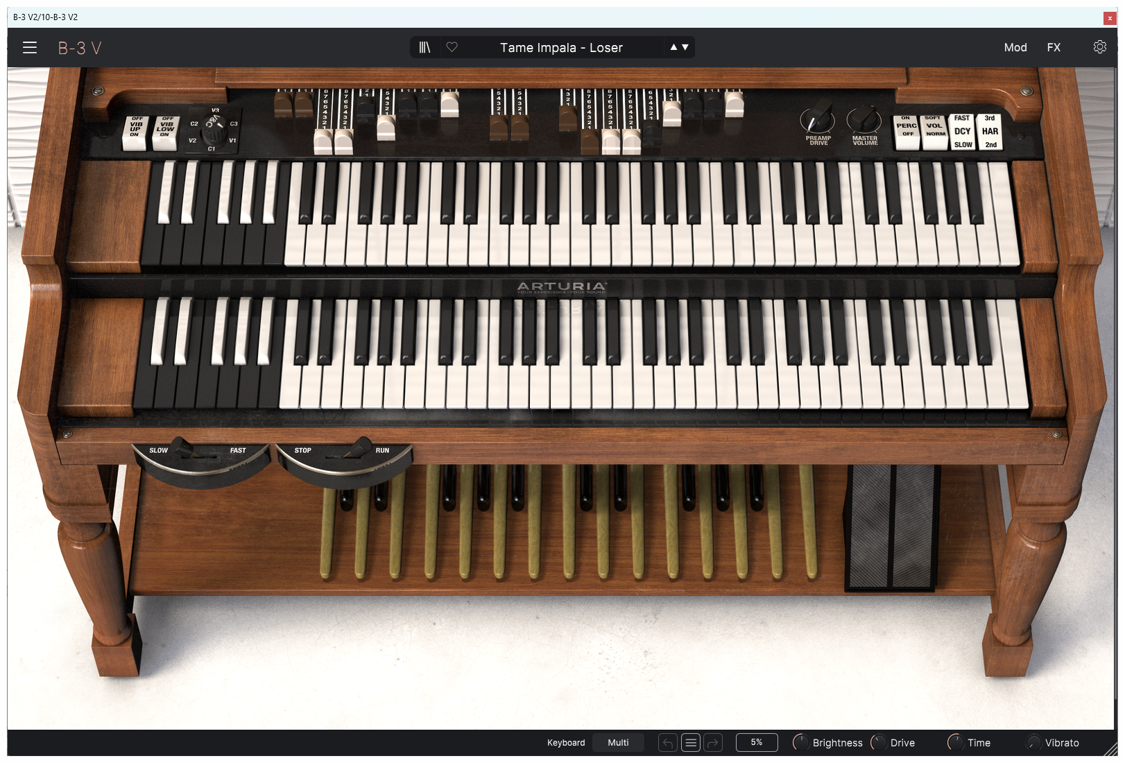 Finally, in the bridge, there's an organ-like synthesizer that I recreated with Arturia's B-3 using the following settings. Listen to it.